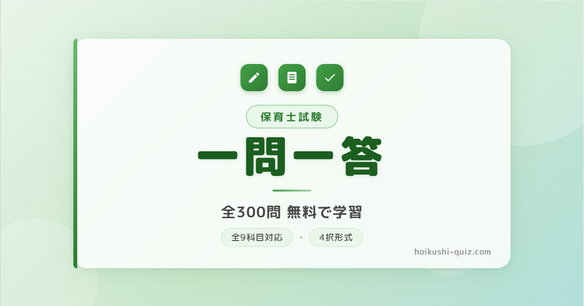本サービスは保育士試験の学習支援を目的としたものです。掲載している問題・解説は参考情報であり、正確性・完全性を保証するものではありません。